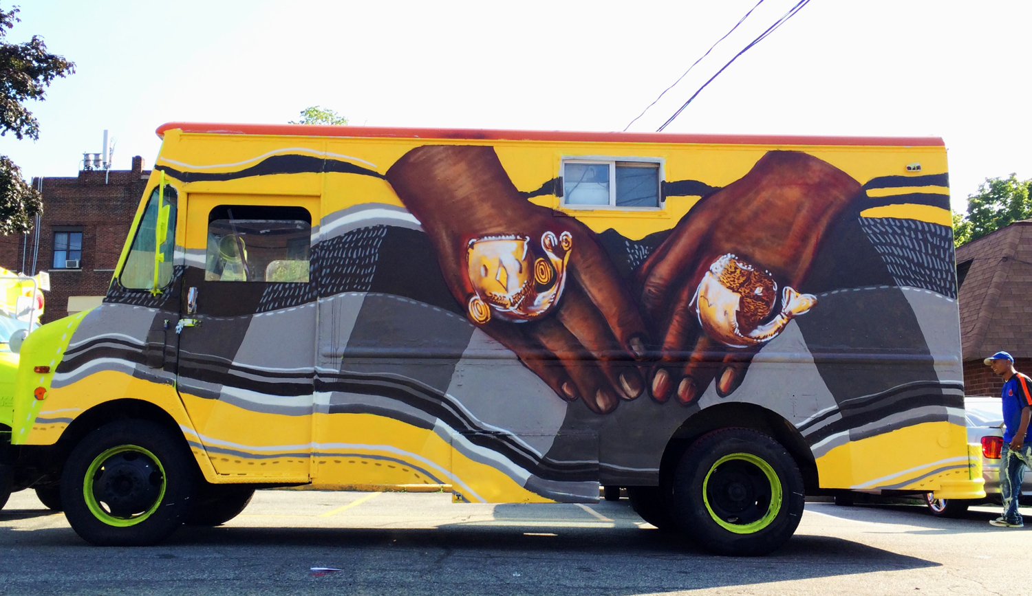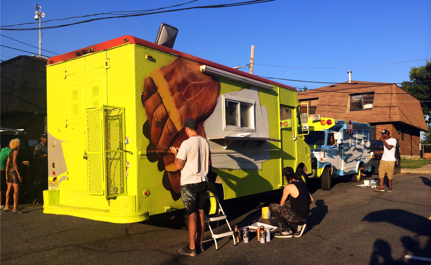 Food trucks collaboratively painted by Nannok, Mata Ruda and Lunar New Year in Newark, New Jersey for Digga's small business in the Central Ward.
