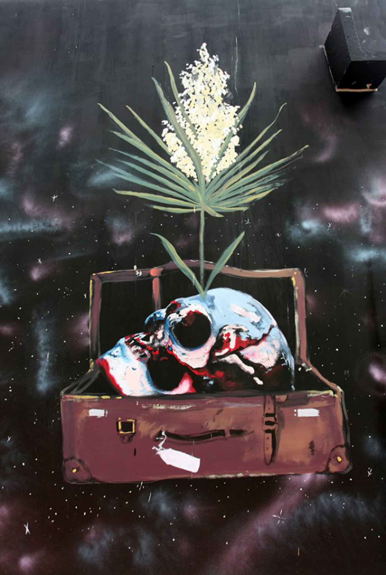 is a mural based on Salvadoran poetry as interpreted by Salvadoran artists and myself. The site we painted, Teatro Camara Roque Dalton, set the tone for the piece by being named after the seminal poet who lived in exile and died murdered in San Salvador. This idea then grew to include a poem by Javier Zamora, @jzsalvipoet a contemporary poet born in San Salvador who migrated to the USA at age 9 to be reunited with his parents. This poem is titled "Instrucciones Para Mi Entierro" and was presented during the skill share workshops to the local artists and participants in order to derive imagery, metaphors and interpretations as content for the mural. From those conversations we decided to also include a portrait of #AmadaLibertad or Leyla Patricia Quintana Marxelly, a poet and guerrilla fighter who died at 19 fighting for the Resistencia Nacional party. Her inclusion is a major key because she became a symbol for a new generation of Salvadorans but is not widely recognized as part of the narrative of Savadoran identity. Put all of this together and we have a mural painted by many hands and minds that reflects on the value of culture, culture that needs to be free, free como el pan y poesia, free and open for all.