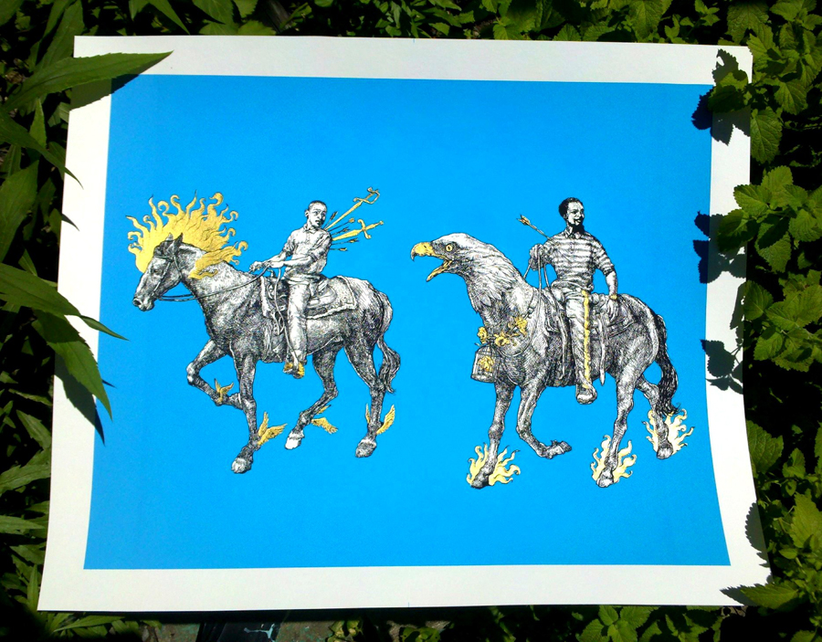 Acrylic with Gold Metallic, silk screen ink on off white paper, 280gsm