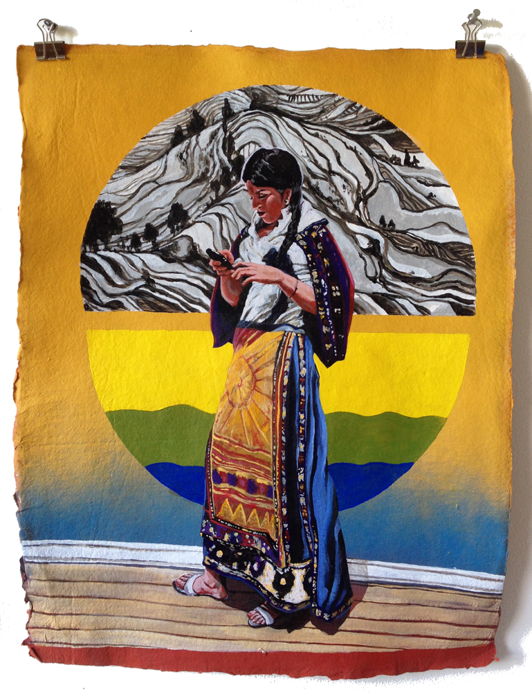 acrylic and spray paint on paper