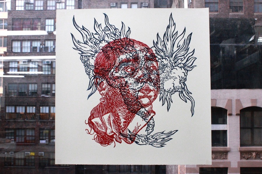 2 color woodcut print on 250 grams cotton rag paper