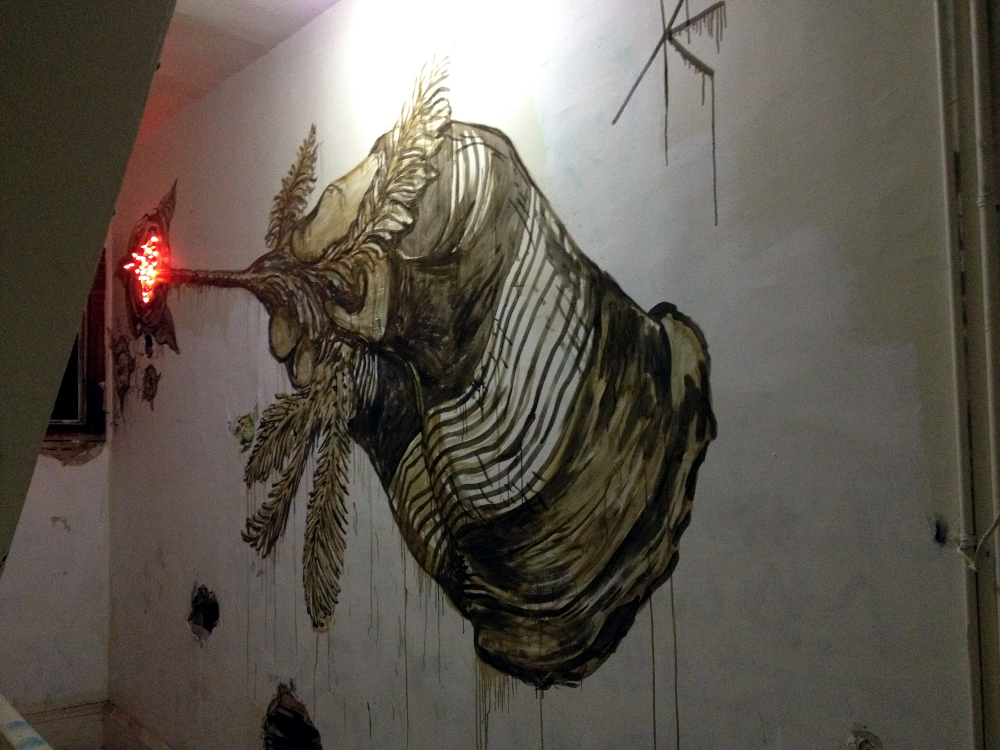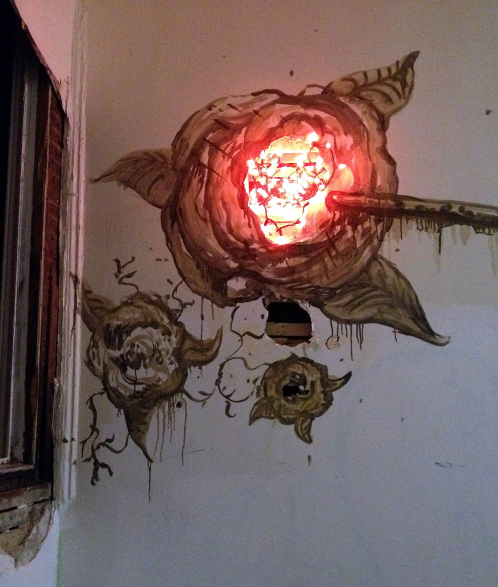 a mural painted in an abandoned east village apartment equalling to Hanksy's Surplus Candy in NYC.